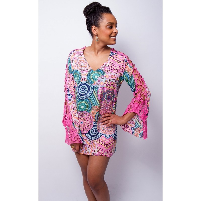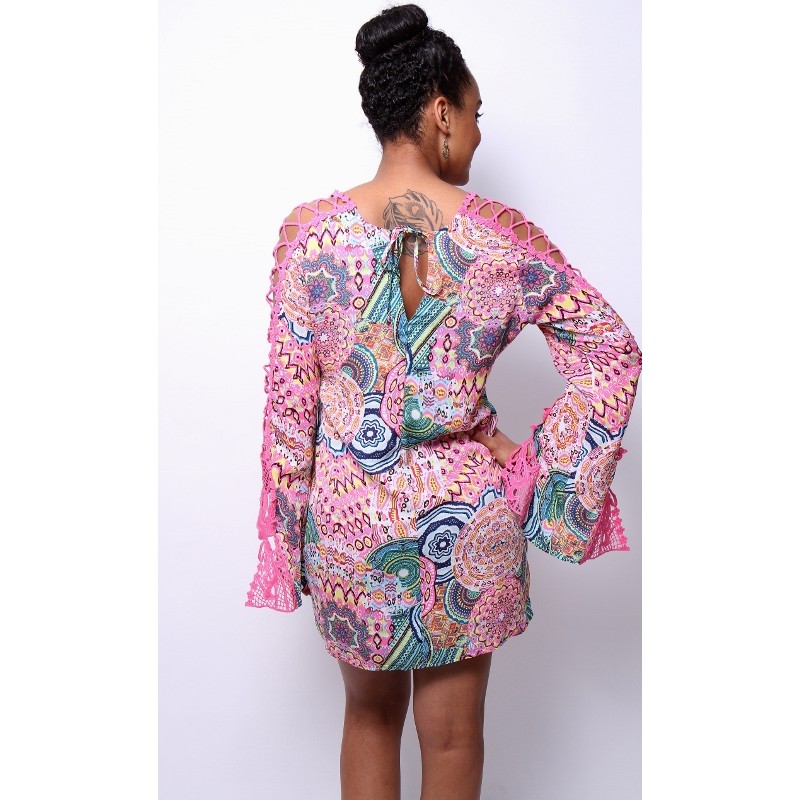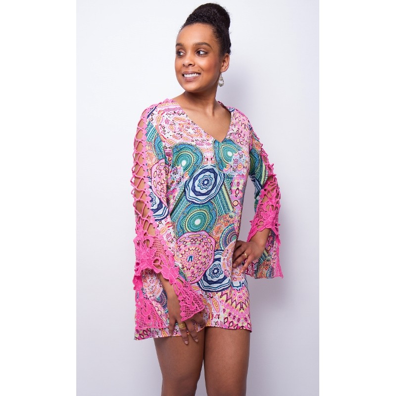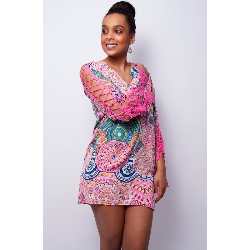 Exclusieve Jurk roze/groen van Enzo Loco Het model is van soepel top kwaliteit zachte stof.