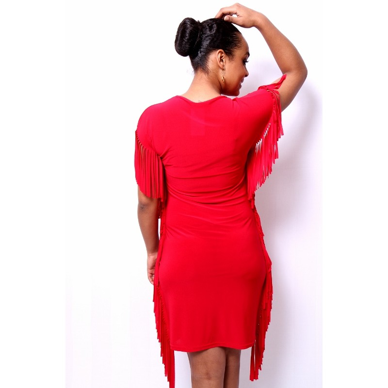Exclusieve Sexy jurk rood met franjes van MARY COOL. Het model is van soepel top kwaliteit zachte stretch stof.