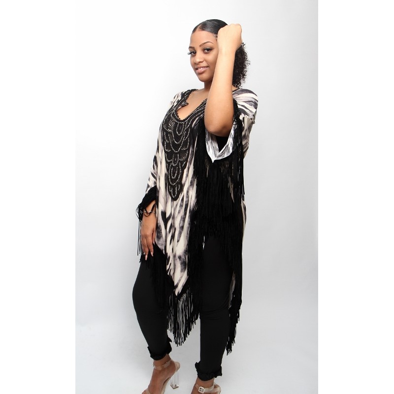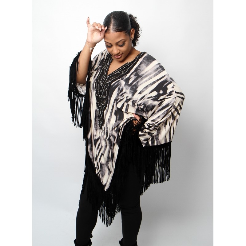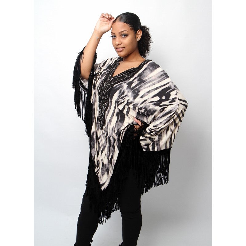 Exclusieve Poncho van Laurie& Joe Het model is van soepel kwaliteit en heeft een V- uitsnede. |