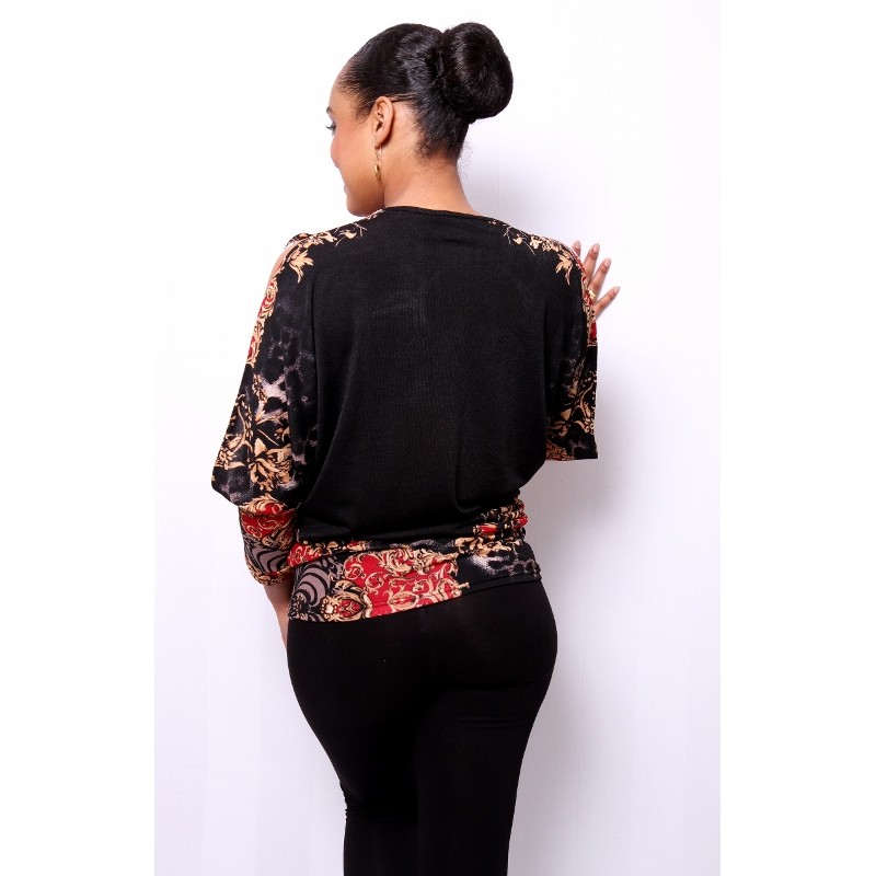 Top Antraciet-Bordeaux met open mouwen en steentjes