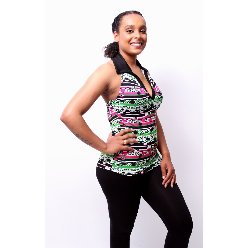Kleur: Groen/magenta-zwart gedessineerd