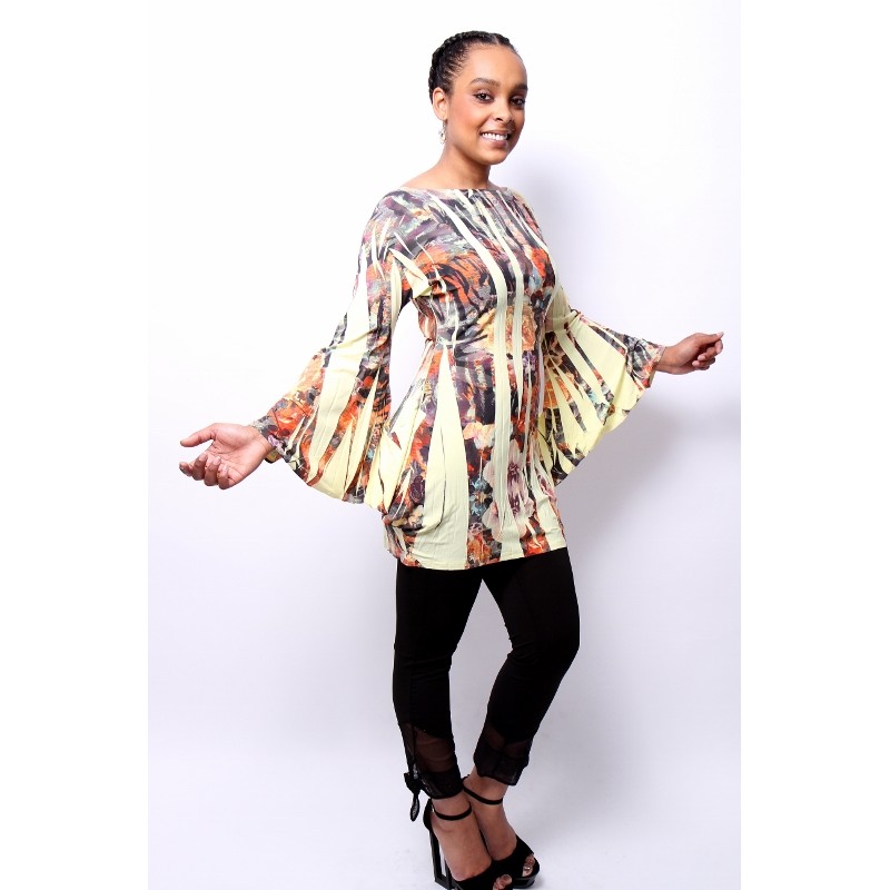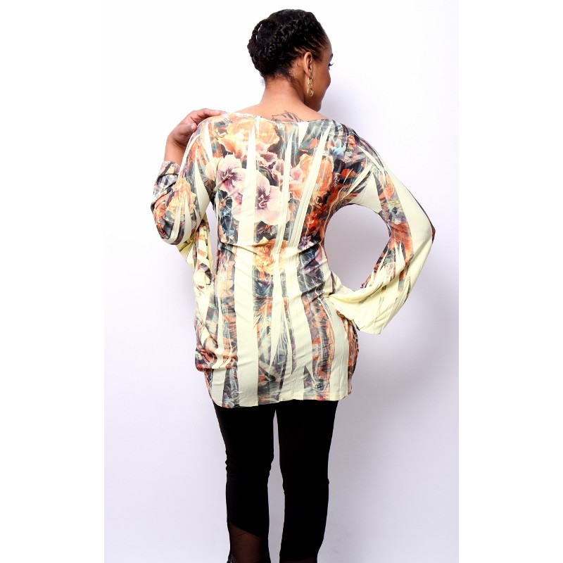 Exclusieve Top Geel bloemen design van MARY COOL. Het model is van soepel top kwaliteit zachte stretch stof.