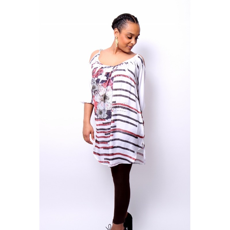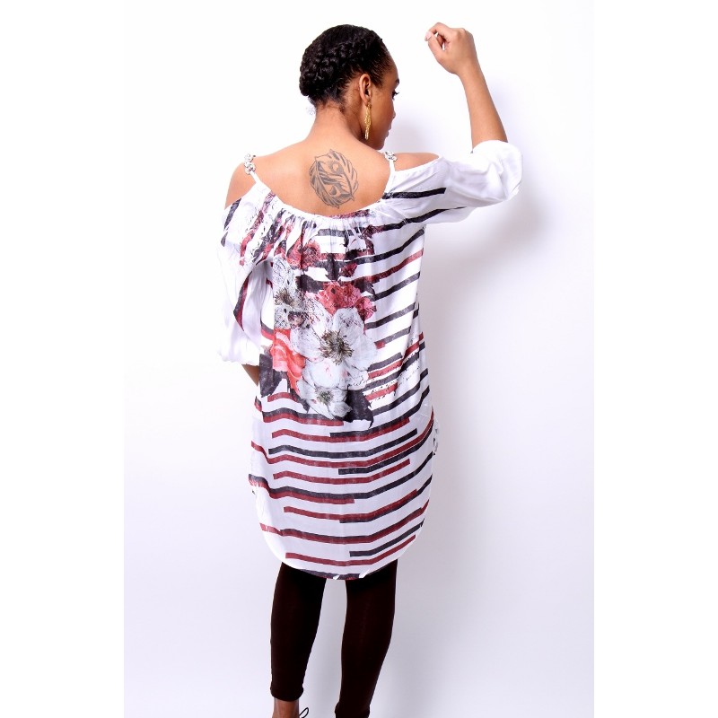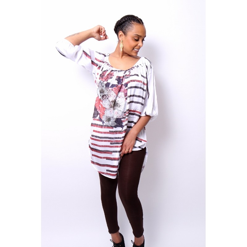 Tuniek wit-bruin met strassé