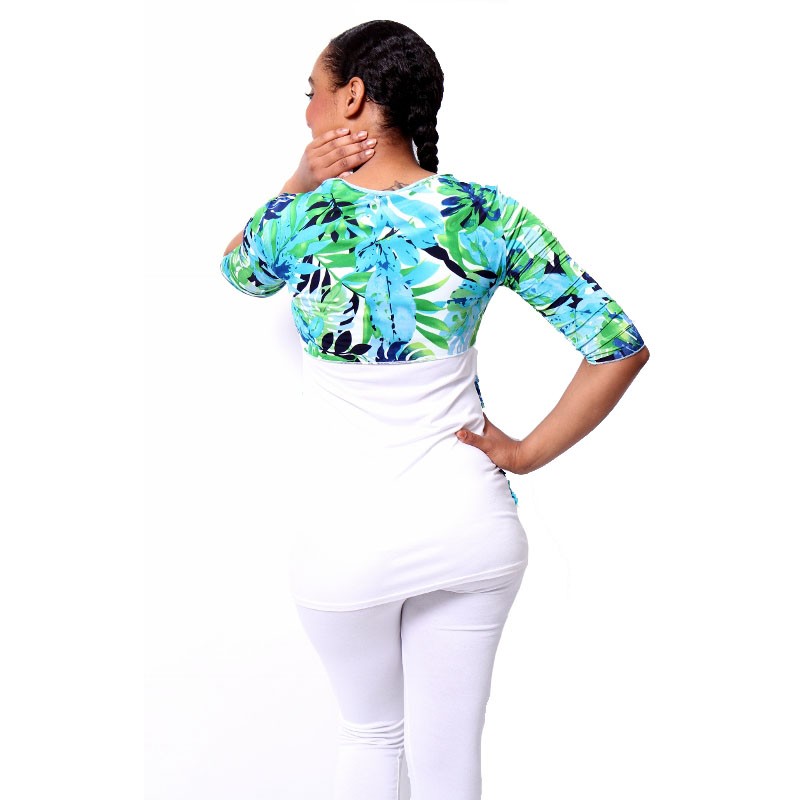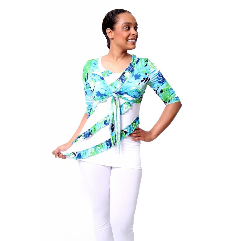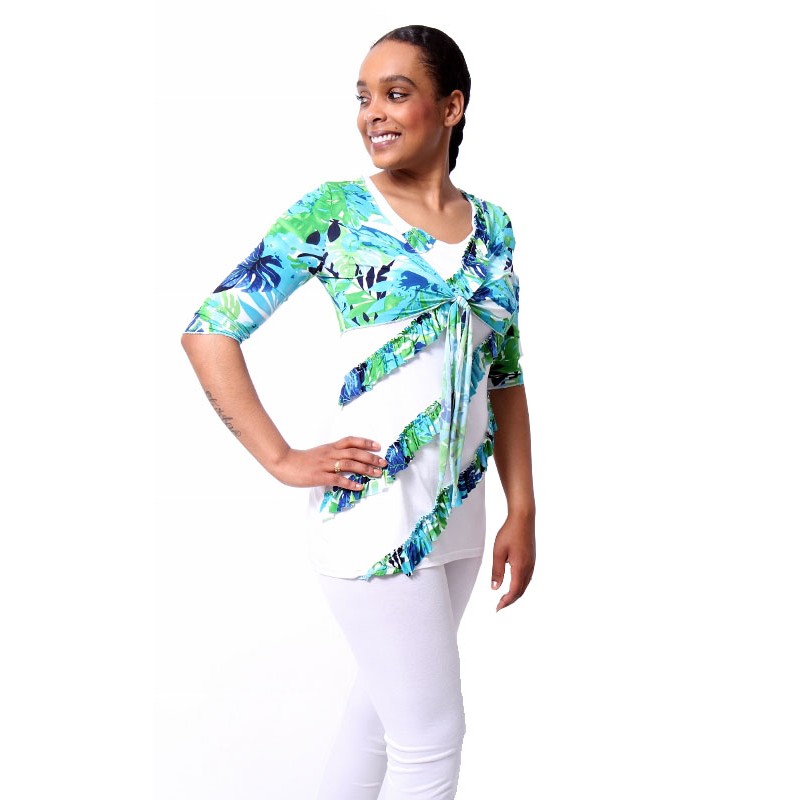 Exclusieve Twin Top met vestje wit groen van Pas de Quoi Paris. Het model is van soepel top kwaliteit zachte stretch stof.